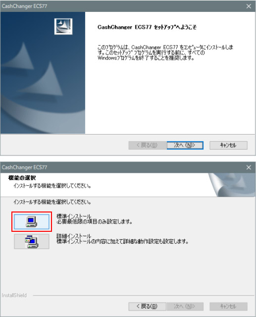 本セットアップは、8項目のポート番号入力以外は、基本的に「次へ」で終了します 1 - ようそこ画面「次へ」を押します 2 -「標準インストール」を押します