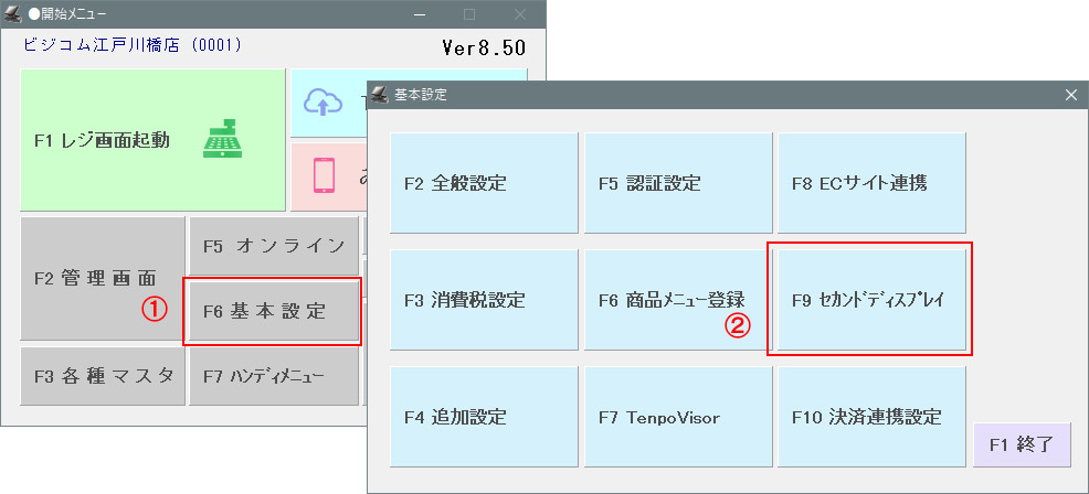 注意:設定前にセカンドディスプレイを、POS本体から外してください。接続したままだとインストールが行われません。