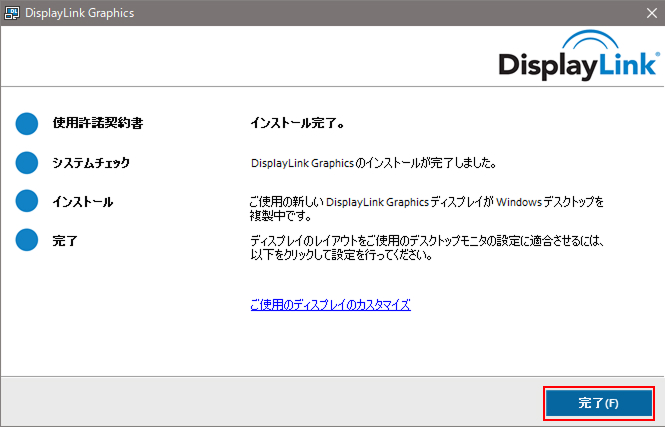 ※ ドライバーインストール中の案内に従い、セカンドディスプレイを接続してください。