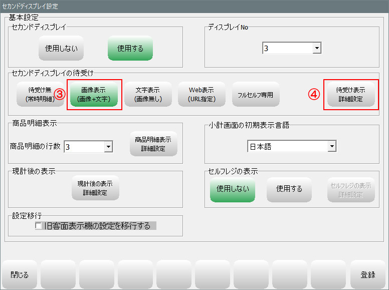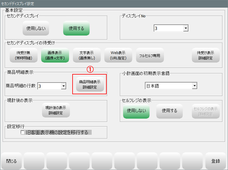 | 表示内容 | セカンドモニタに表示される商品マスタの表示項目を選択できます。 |