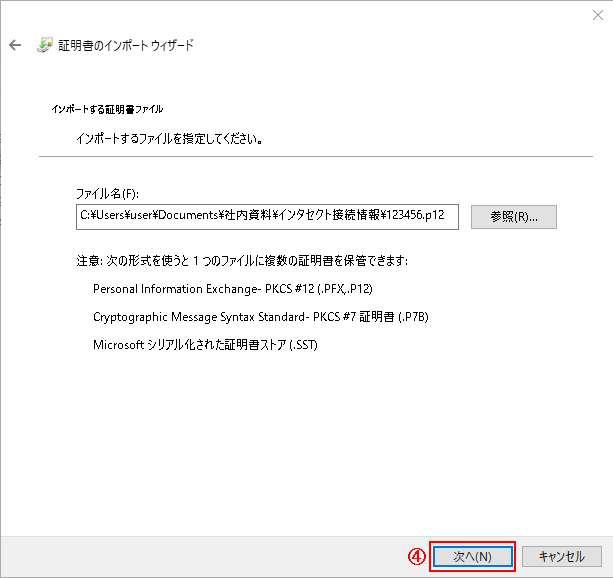 ④-「次へ」を押します。