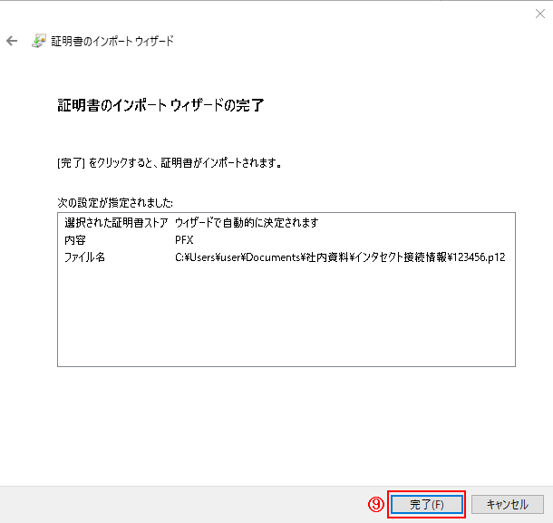 ⑨-「完了」を押して終了です。