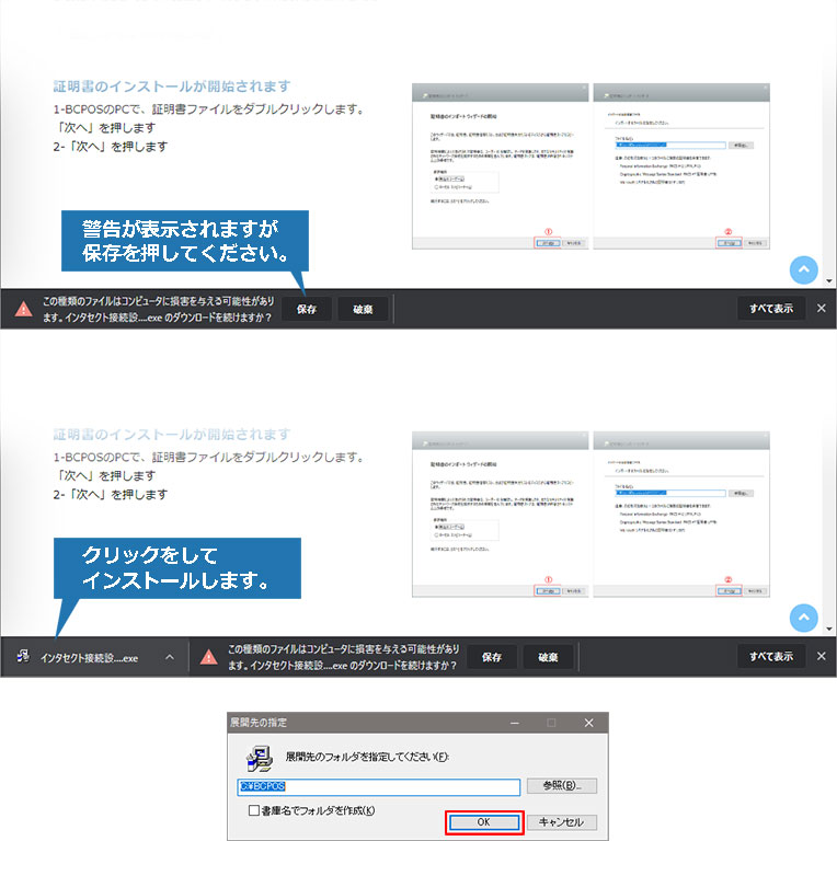 ①-QR決済を使用するBCPOSのPCで下記の「 IntaPay設定ファイル DOWNLOAD 」を押して、右図を参考にファイルをインストールしてください。