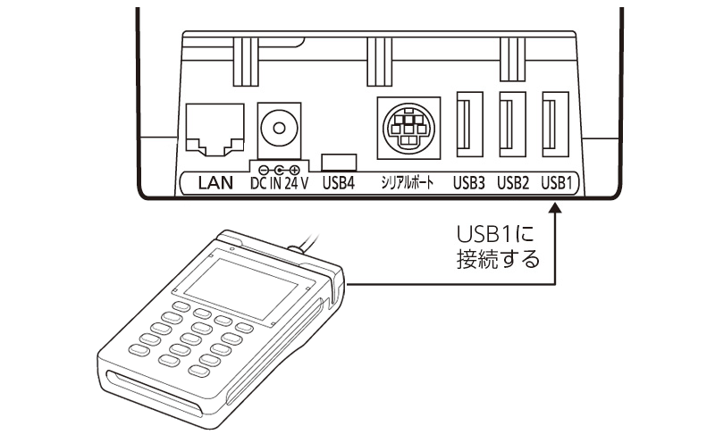 ③-PINパッドは必ず、図の通りUSB1に接続してください。
