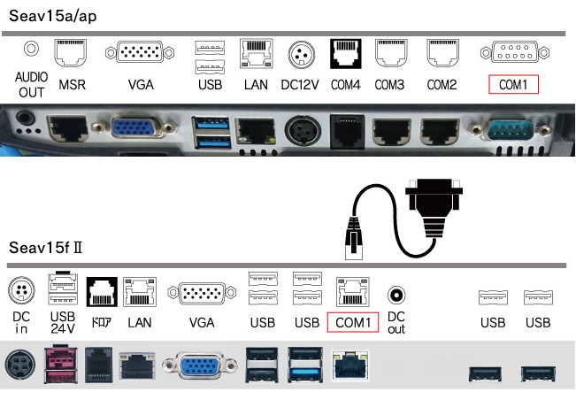 ※Seav15fⅡの場合、Seav15fⅡに付属のケーブルを使い「COM1ポート」へ接続します。