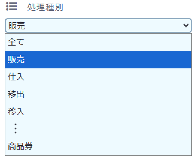 処理種別ごとに絞り込んで売上明細を表示することが出来ます。