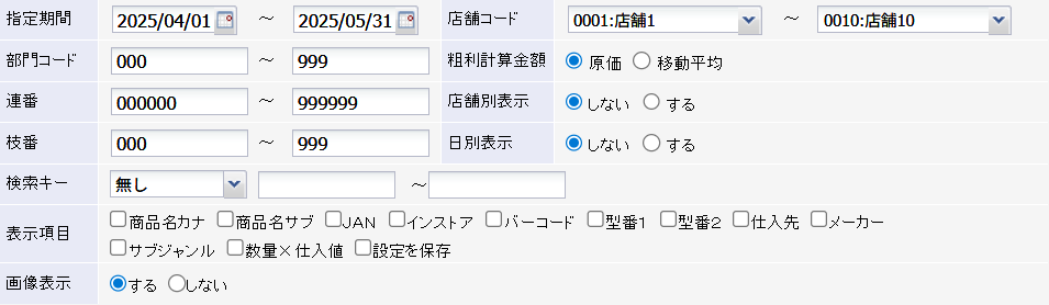 粗利別検索画面 各項目