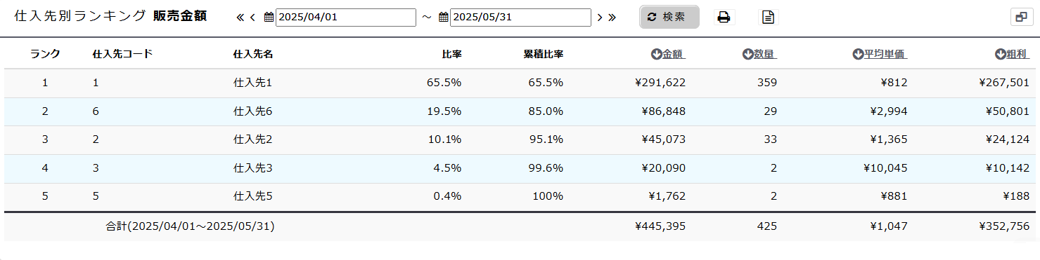 仕入先別ランキング