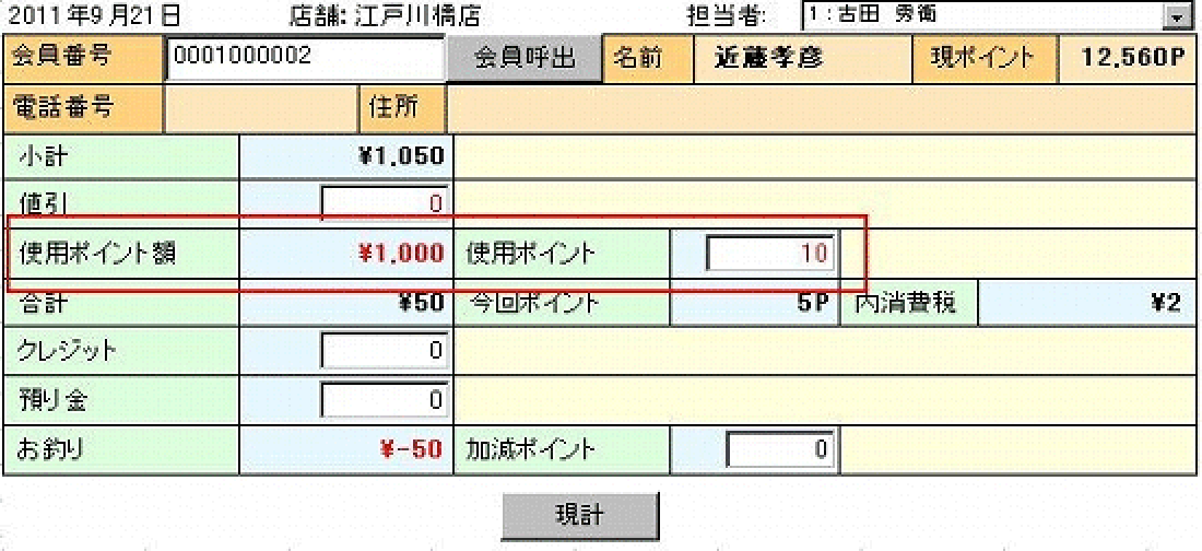 OKを押してそのまま現計をすることによりポイントが削除されます。